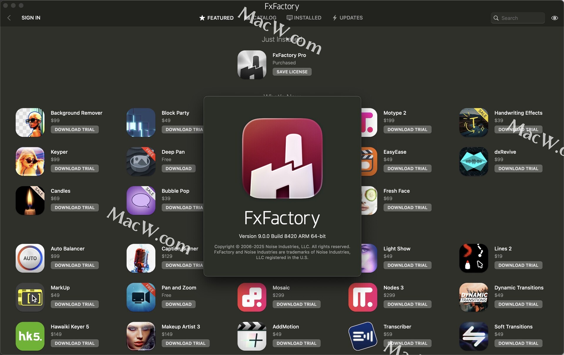 3、该FxFactory OS X应用程序,您还可以使用免费的产品,而无需购买,但也提供了购买和注册的商业产品的支持。