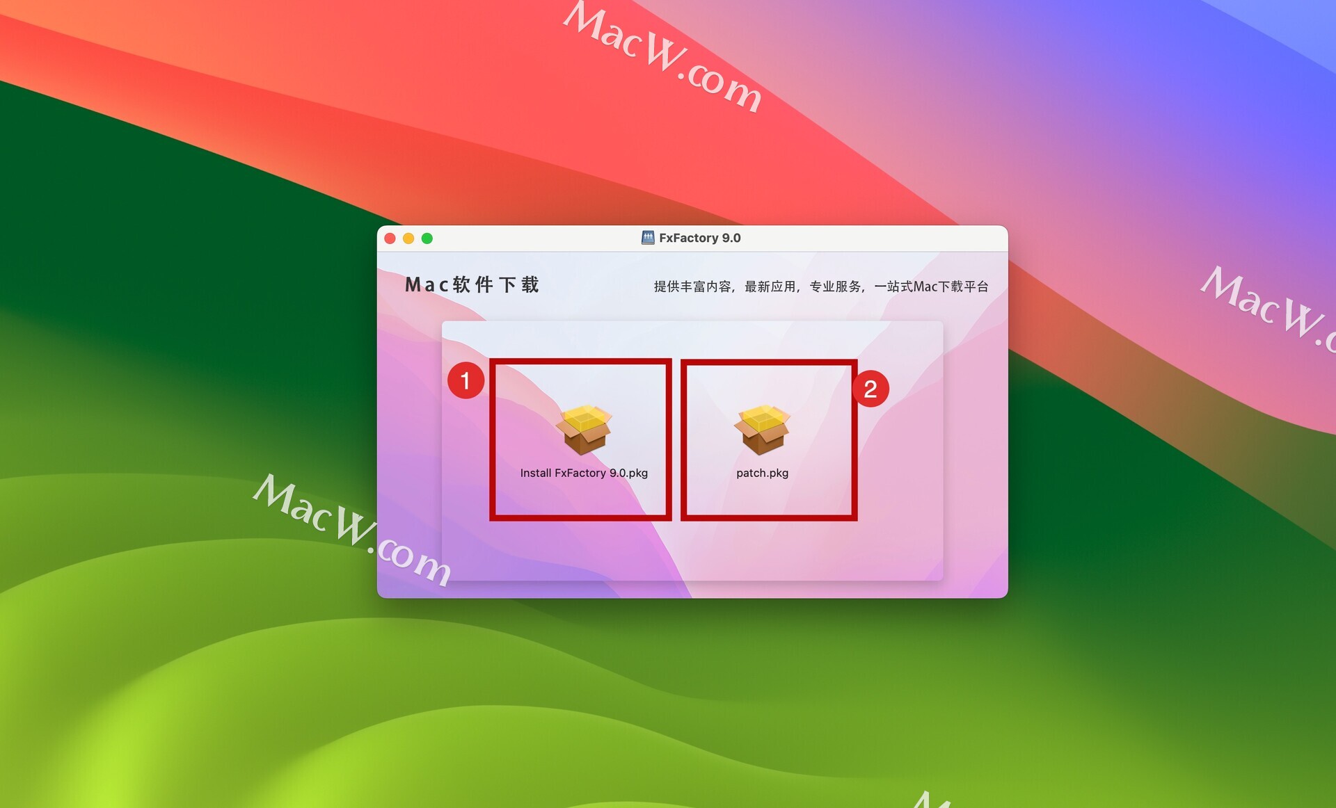 下载完成后打开“fxfactory 破解版”镜像包,双击打开 Install.pkg安装,再双击patch.pkg安装即可。