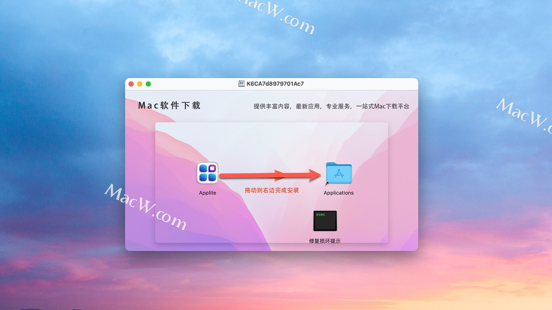 安装包下载完成后打开,将左侧文件拖动到右侧文件夹中即可