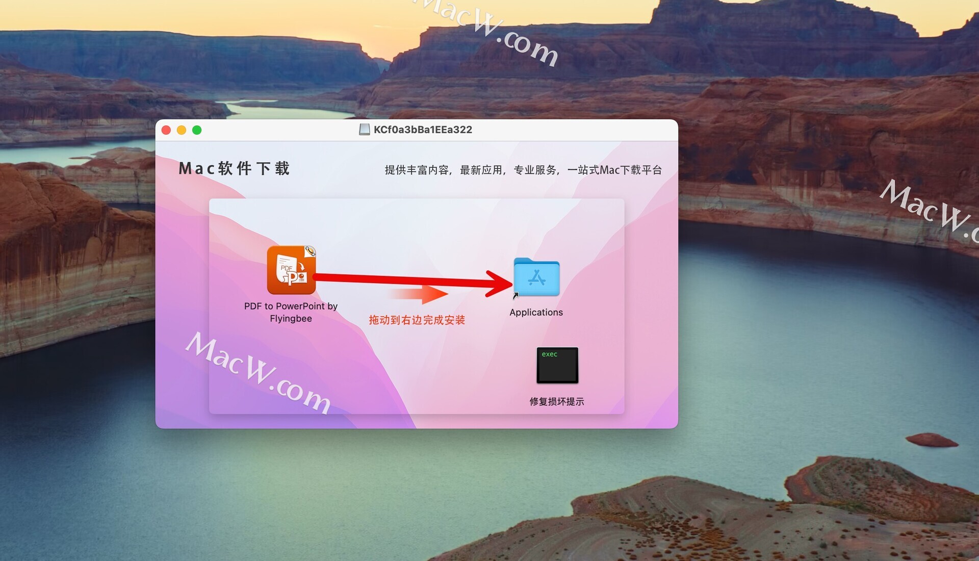 将左侧的Flyingbee PDF to PowerPoint 拖动到右侧的应用程序中即可,如图