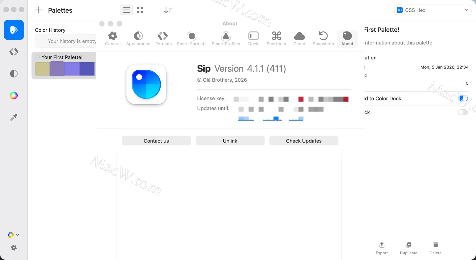 Sip for mac是一款设计师和前端应该会需要的屏幕取色软件,你只需要鼠标点一下即可取得屏幕当前位置的颜色值,并将数据自动存到剪切板,方便随时粘贴出来。支持 CSS、UIColor 等多种格式