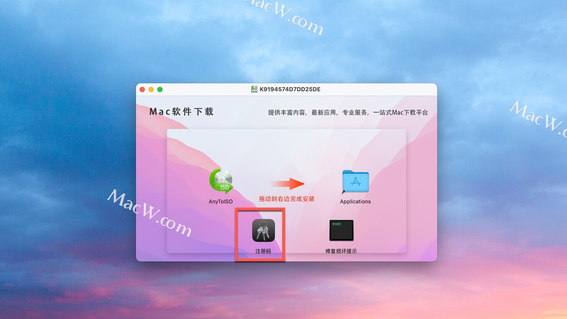 下载完成后打开安装包,将左侧AnyToISO拖入右侧应用程序中进行安装,如图: