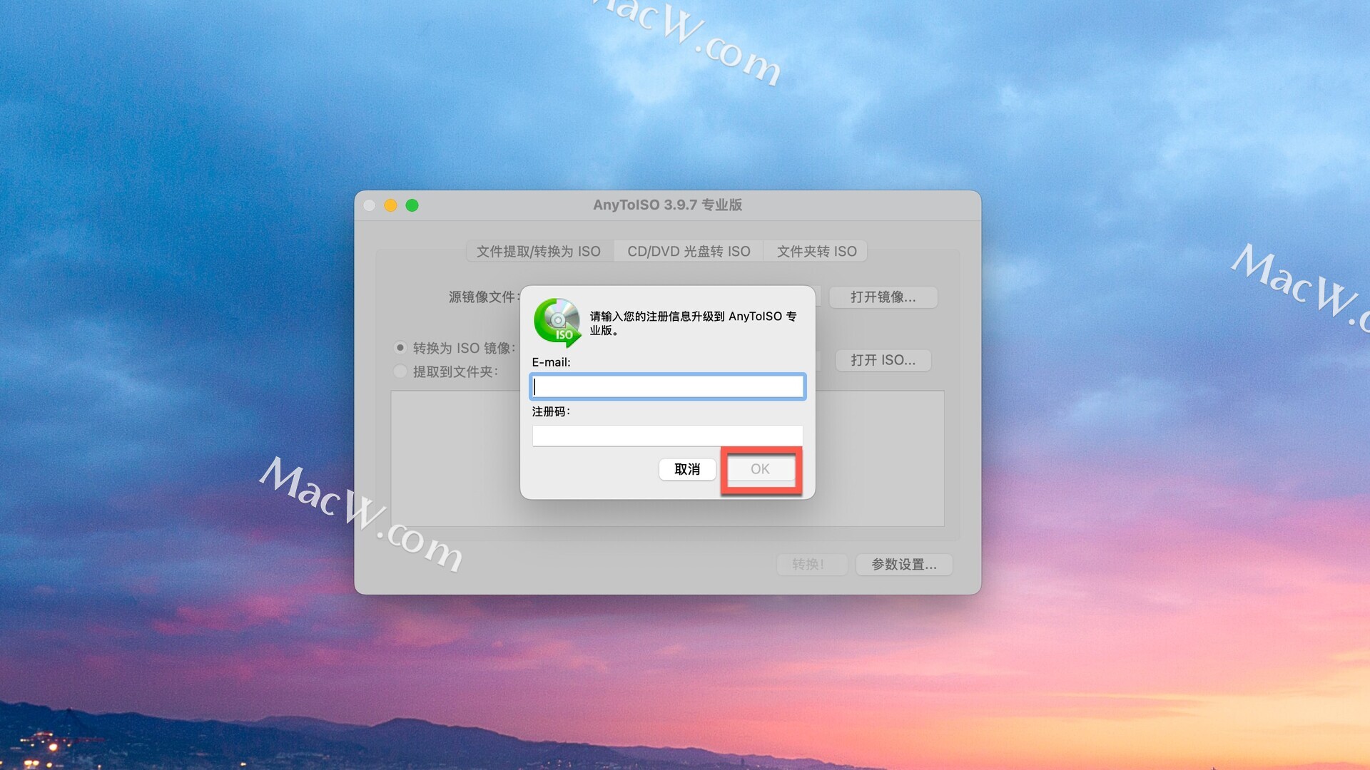 打开软件,点左上角的AnyToISO--输入注册码