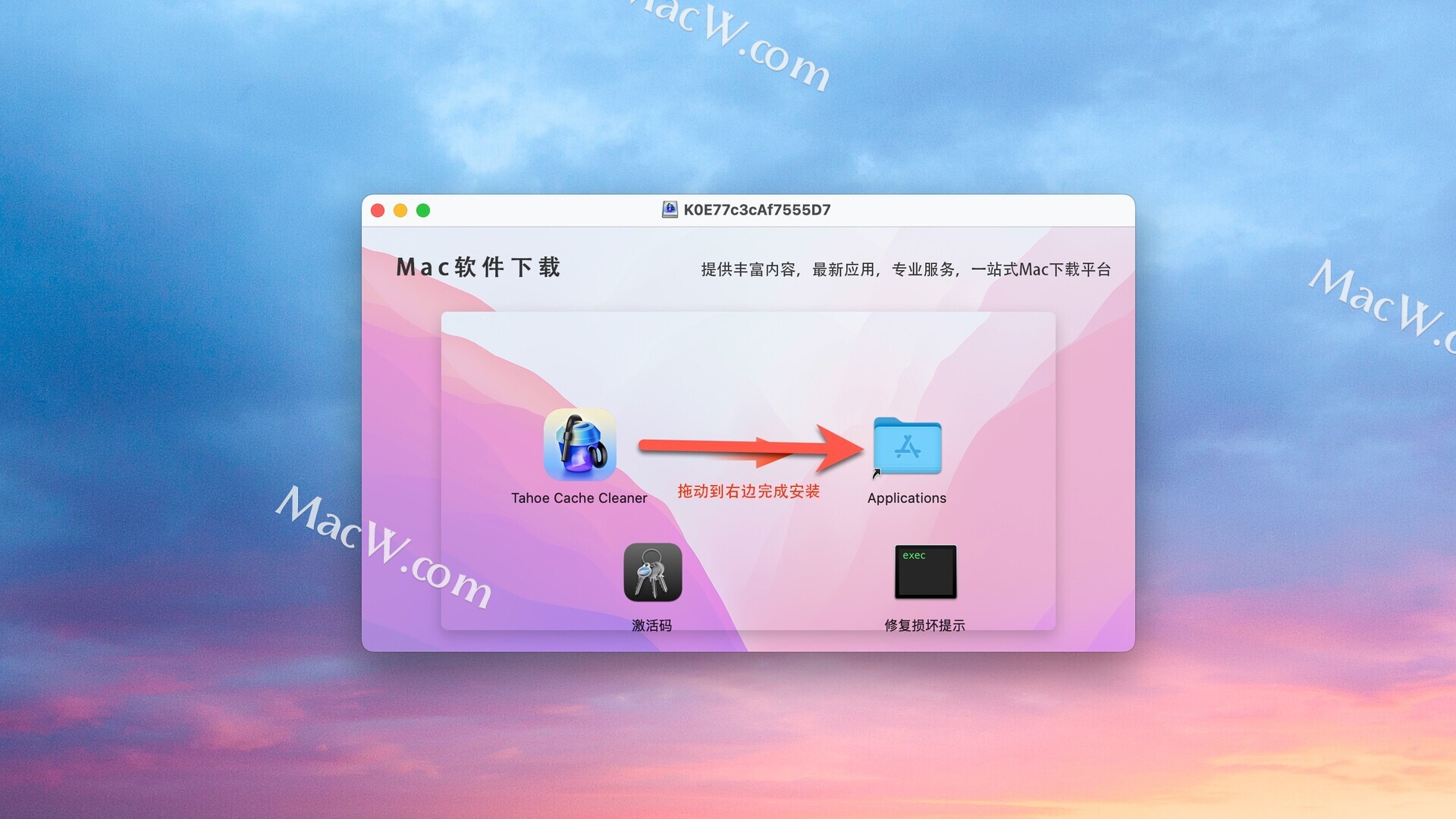 断网或使用防火墙安装使用Tahoe Cache Cleaner下载完成后打开,拖动左侧的软件到右侧应用程序中