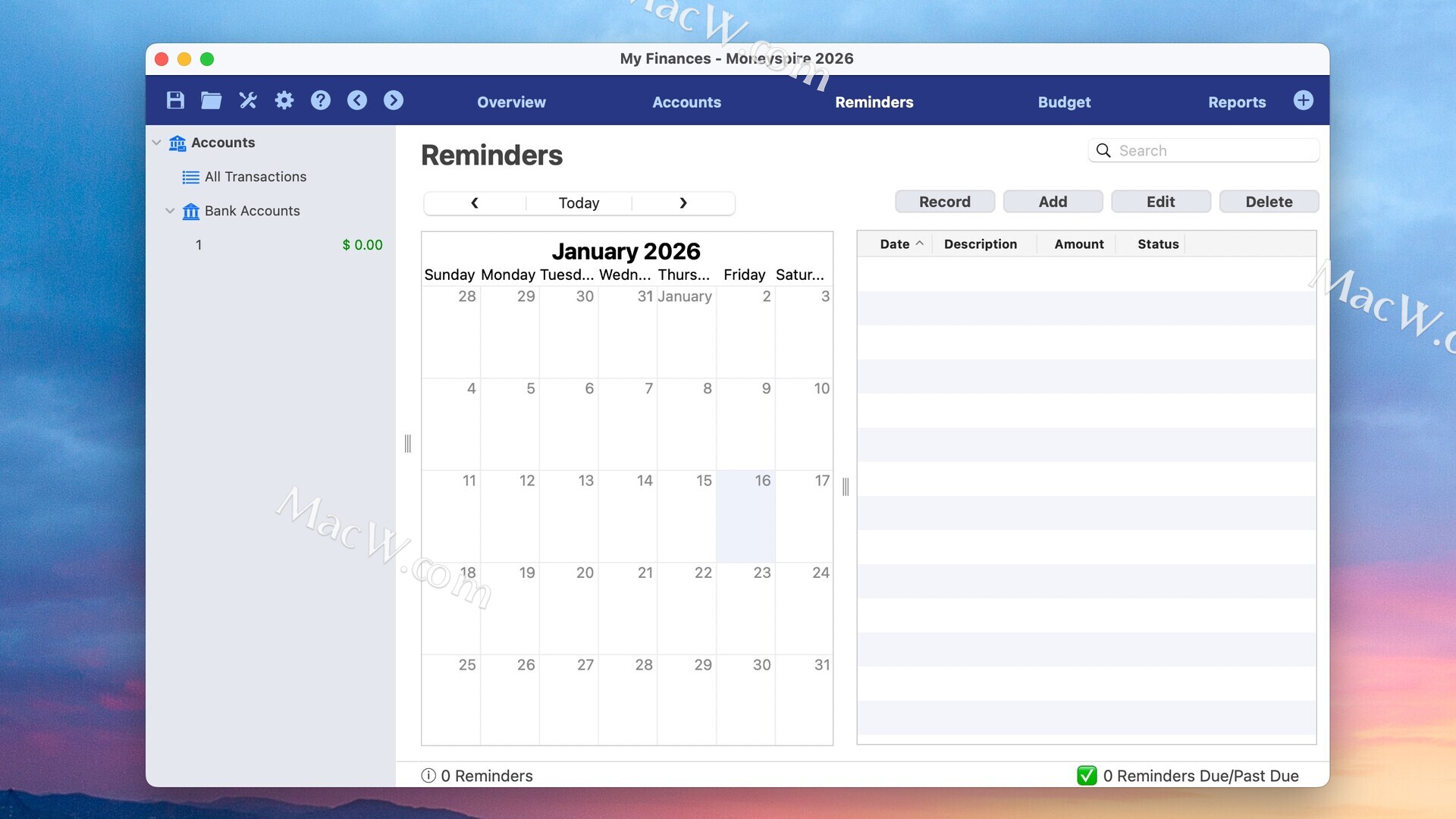 使用功能强大的账单提醒日历,再也不会忘记付款,避免滞纳金和透支。