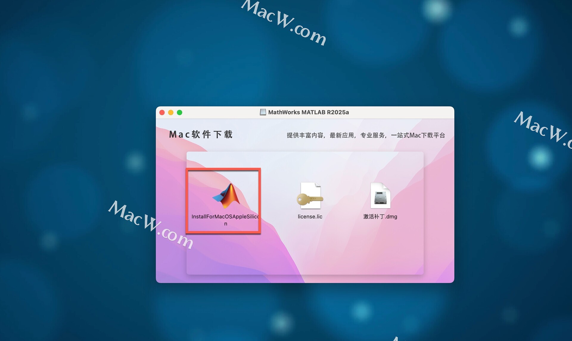 1.MATLAB R2025b下载完成后打开,双击InstallForMacOSX进行安装。