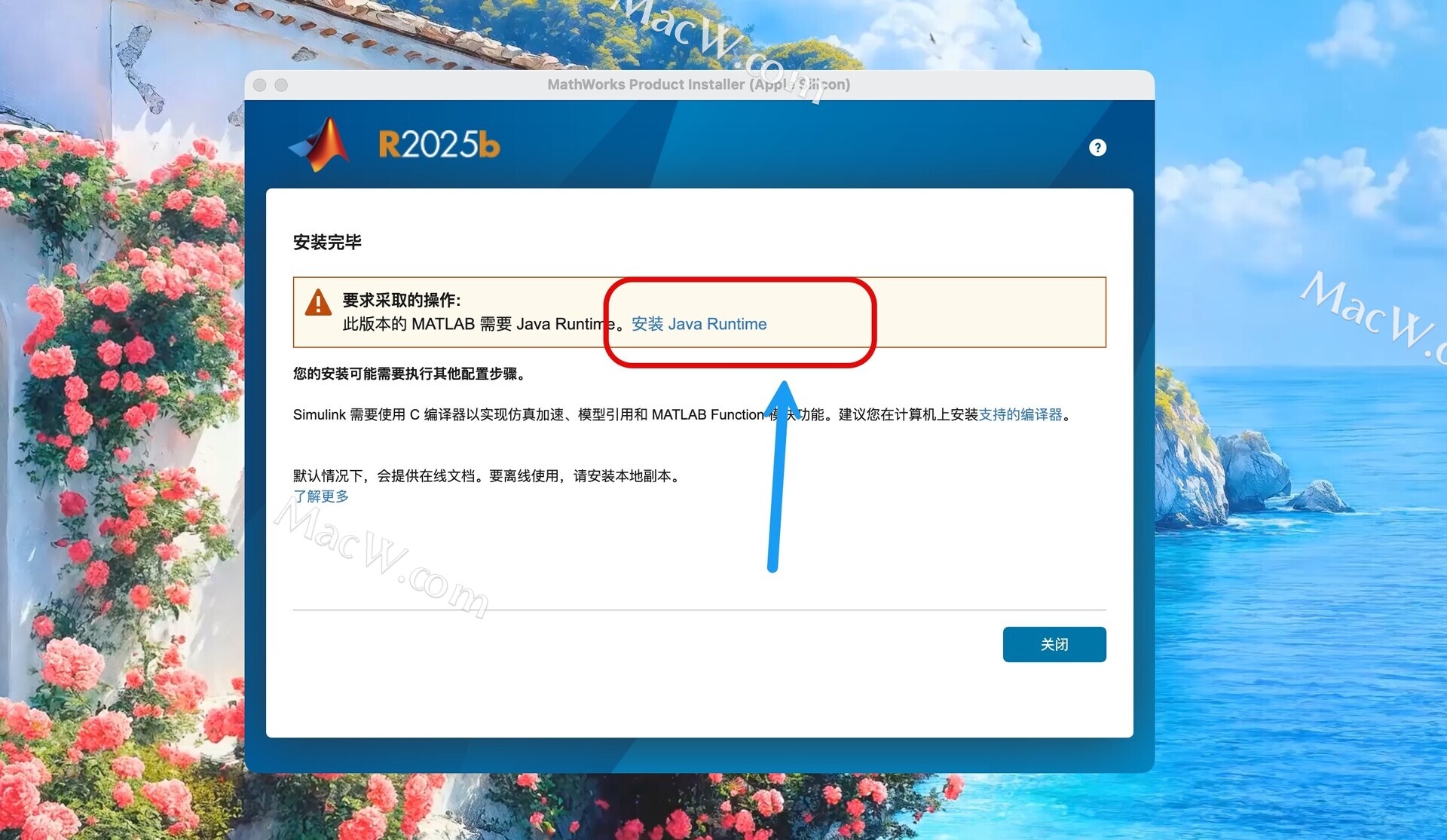 注意:如安装完成后,提示需要安装java文件,点击安装 Java Runtime即可,如下图:
