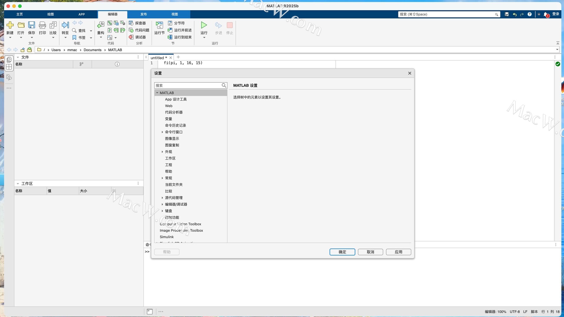 MathWorks MATLAB R2025b for mac是一款商业数学软件,作为数学类科技应用软件中首屈一指的软件,matlab 2025破解版可以帮助您进行矩阵运算、绘制函数和数据、实现算法、创建用户界面、连接其他编程语言的程序等
