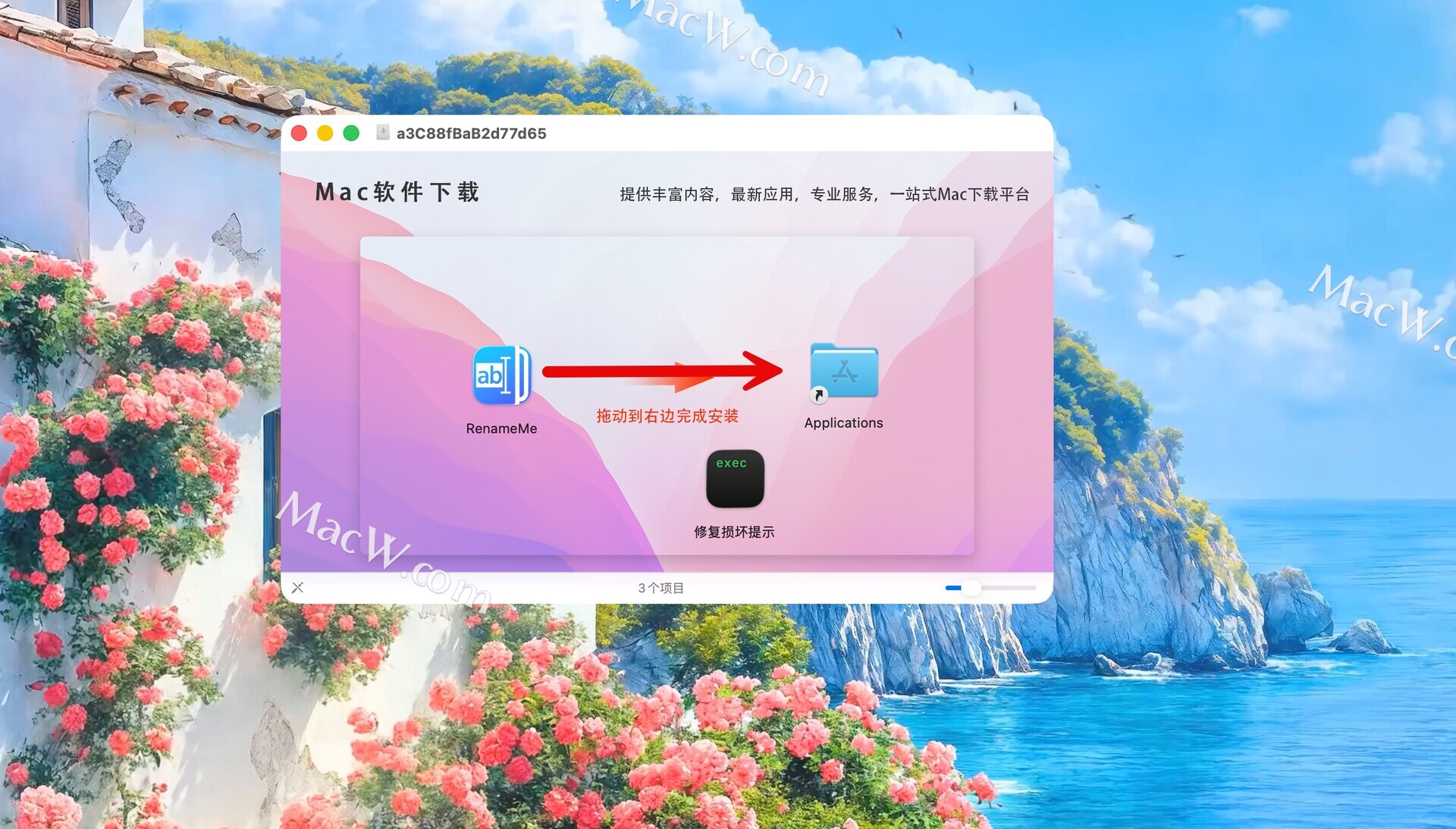 将RenameMe拖动到右侧的应用程序中即可,如图