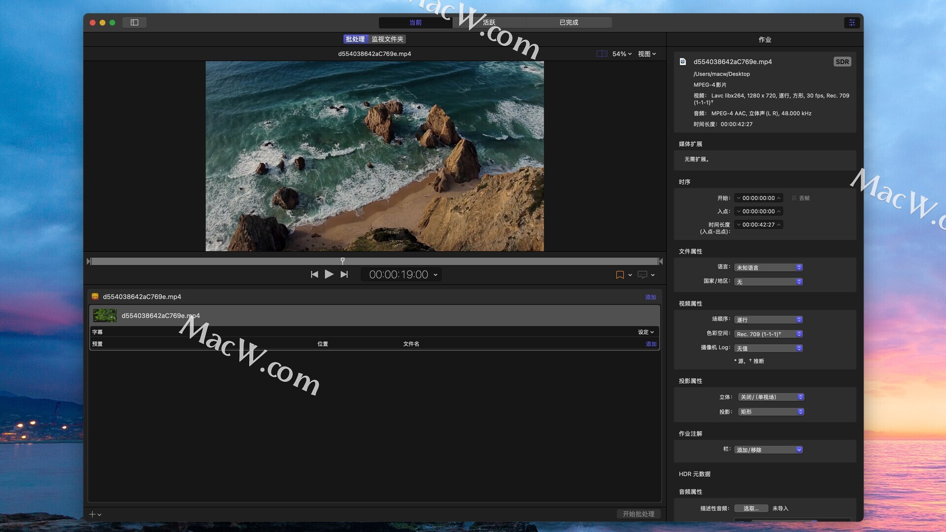 高性能编码。强大的 Metal 引擎可充分利用 Mac 电脑的中央处理器、图形处理器和内存,为高分辨率视频的编码工作提速。Compressor 依托硬件加速来进行 H.264 和 HEVC 编码,可将任务分配到多个中央处理器核心,还能调动图形处理器为各种高难重任加速。