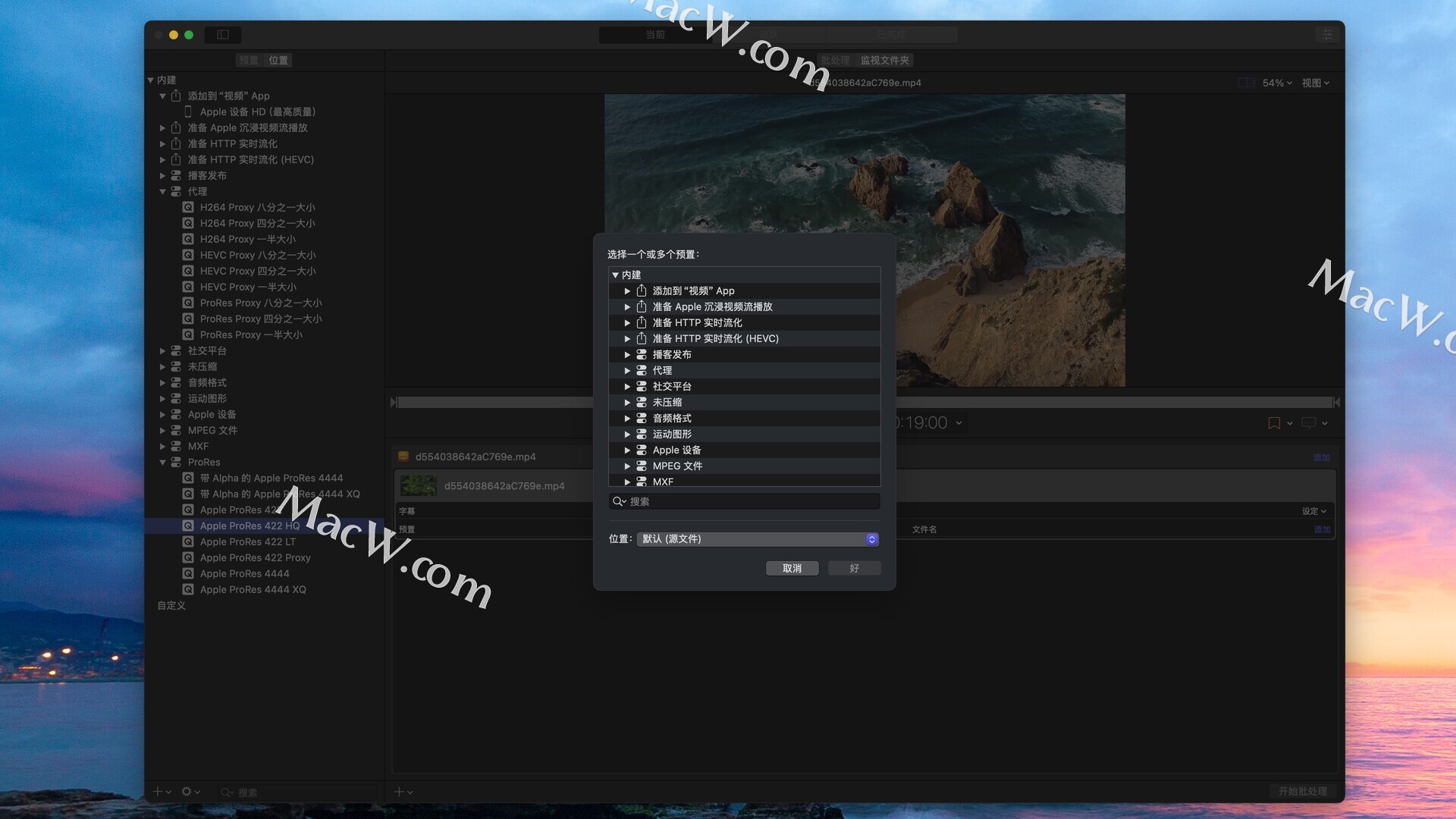 Compressor 广泛支持主流设备输出,也支持各种专业的视频和音频格式,使 Final Cut Pro 内置的编码选项进一步拓展。