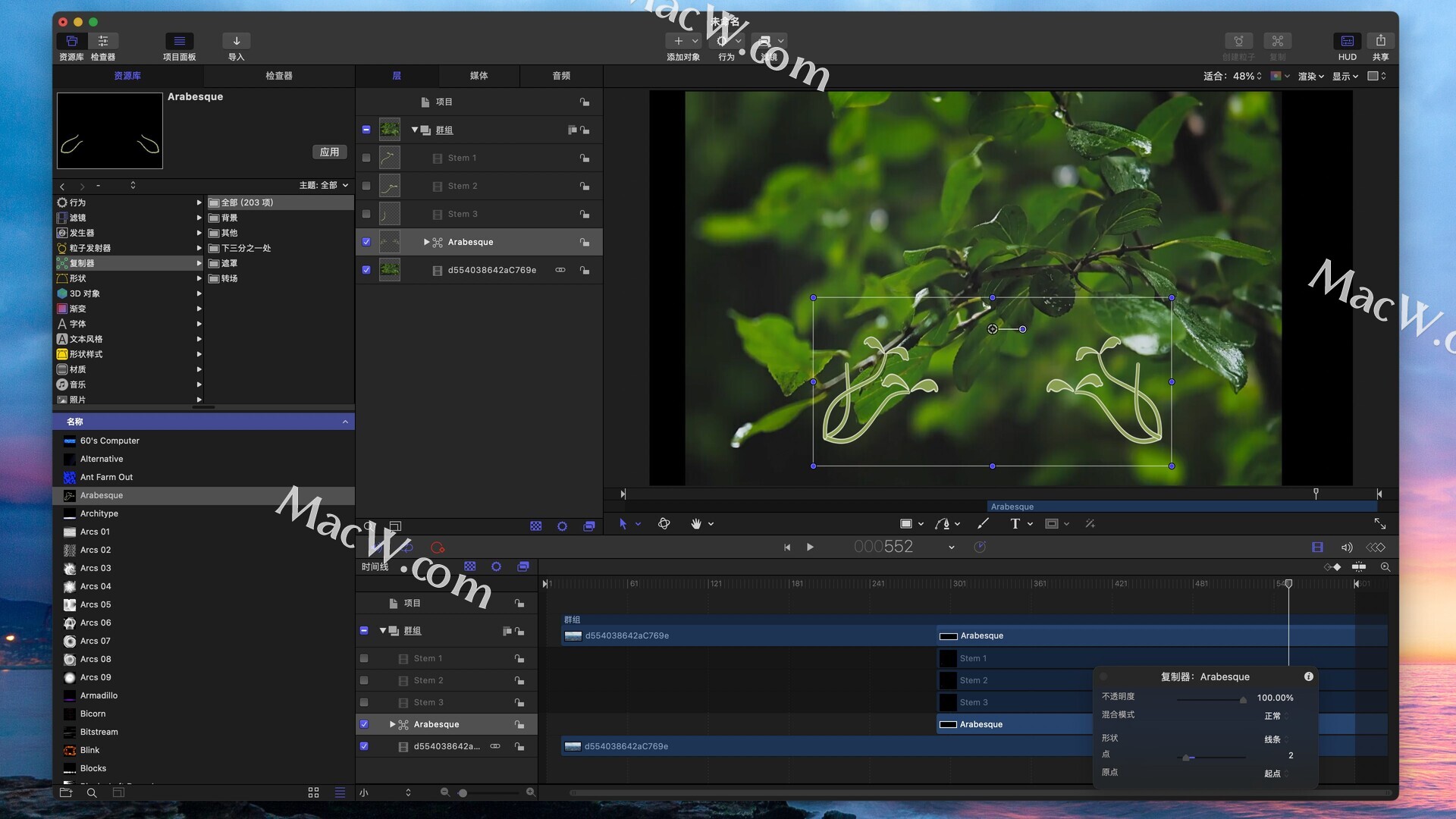 Motion 内置 200 多款滤镜和效果,让你又快又轻松地组合出精彩动画,还能利用精准的控制功能对作品进行微调。
