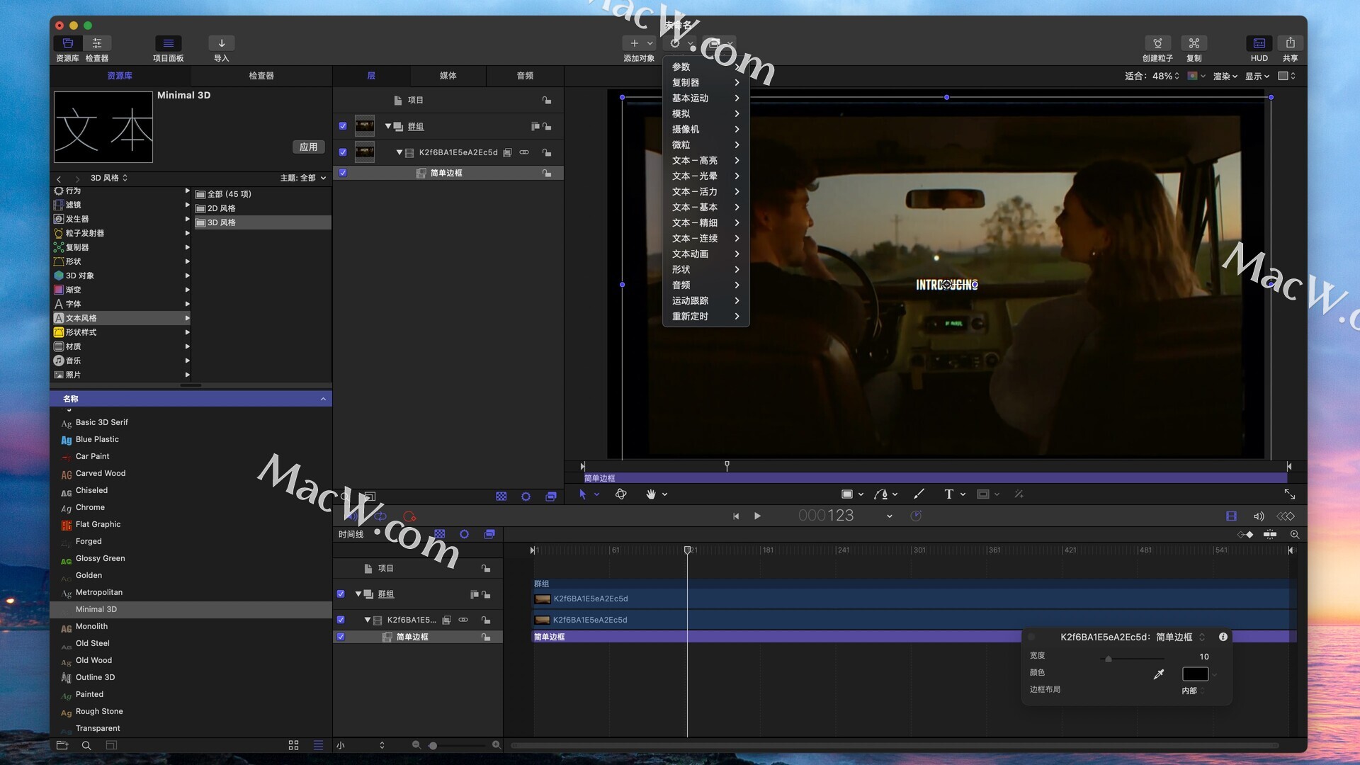 利用发生器制作自定义动画背景,可设定其样式、纹理,或应用至 3D 文本上。