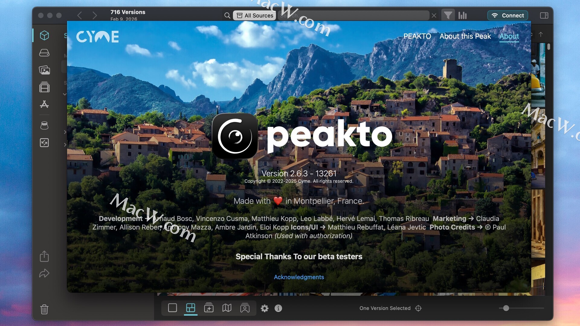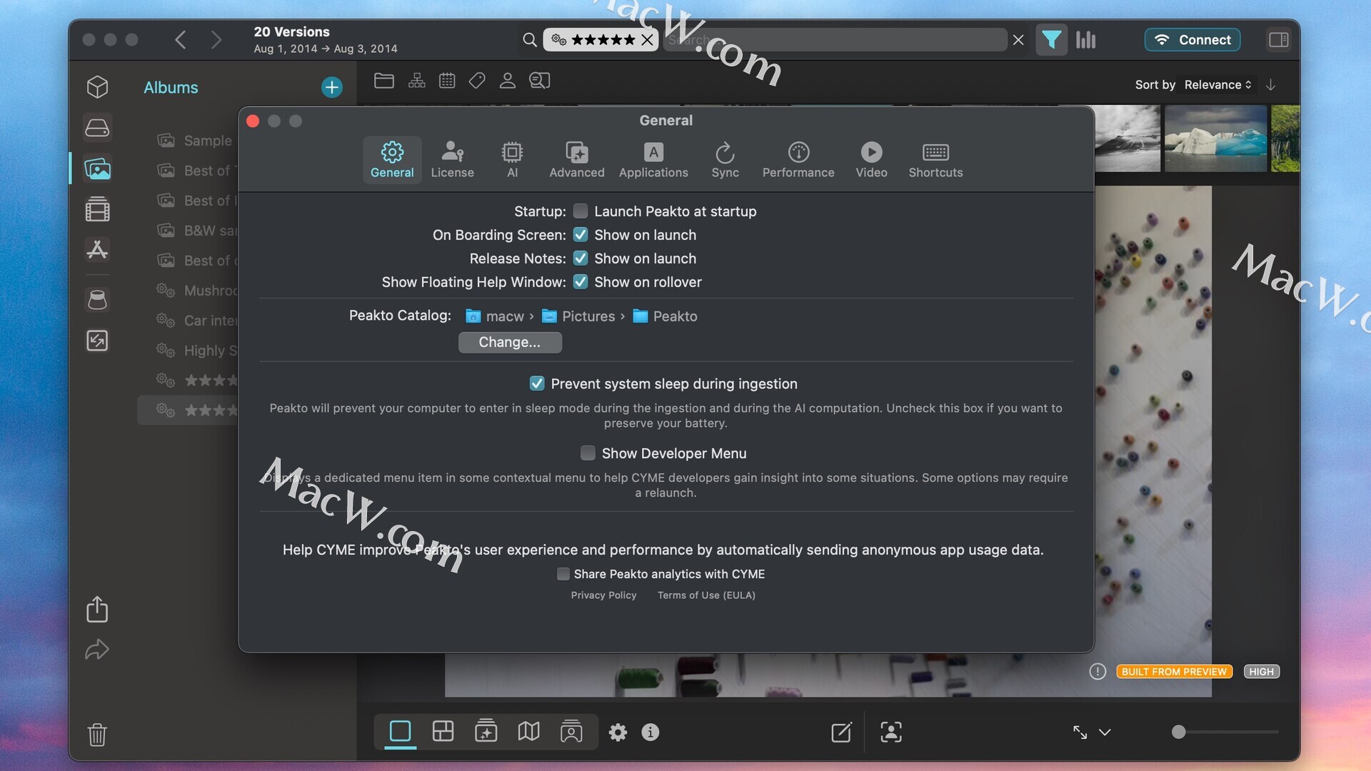 Peakto 需要macOS 12.4 或更高版本,2GB 可用空间,4GB 内存(建议 8GB),以及足够的空间来存放 Peakto 图库和数据库文件。Peakto 文件可以位于外部驱动器上。建议使用高速(SSD)驱动器来存放 Peakto 文件。