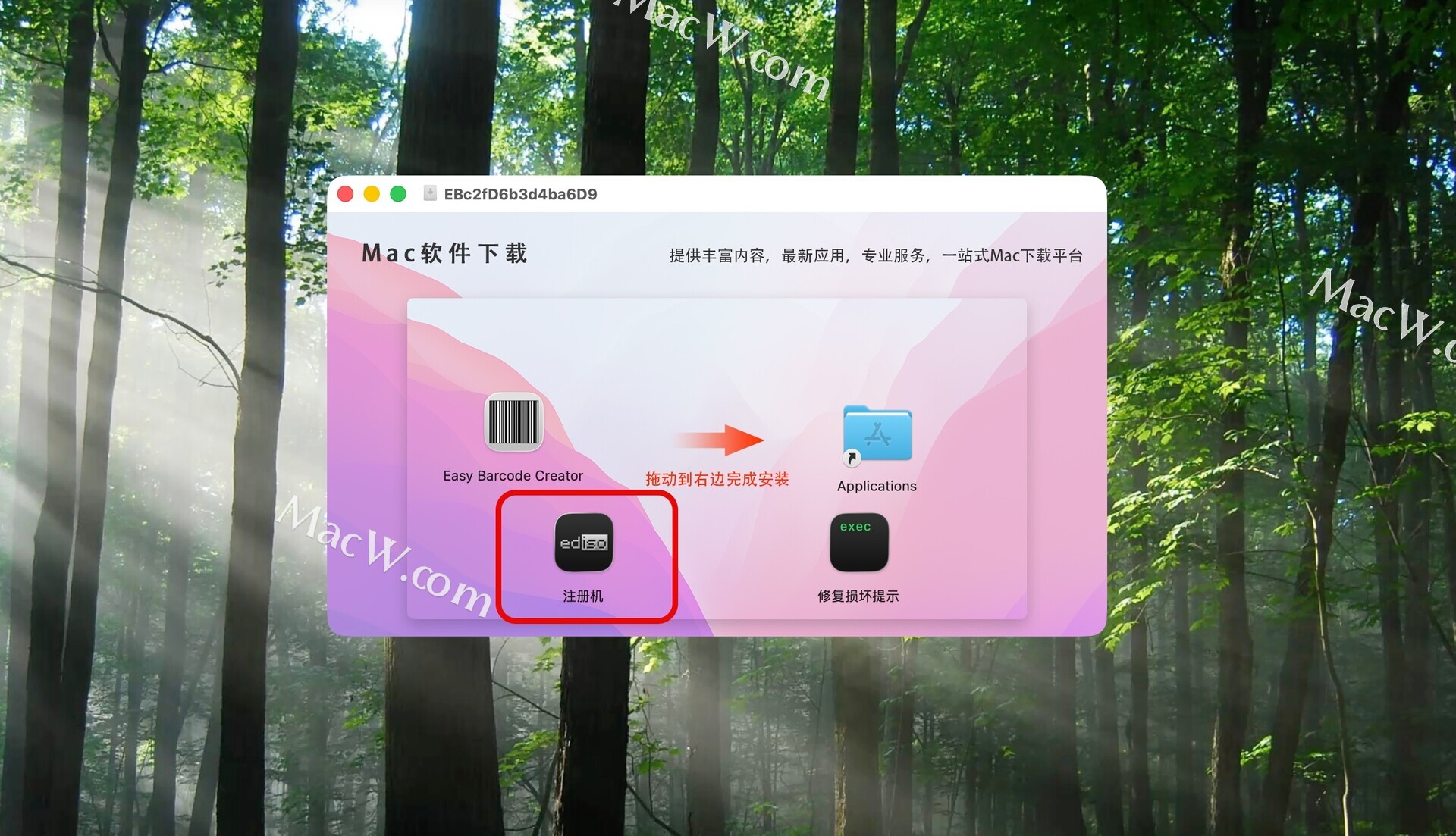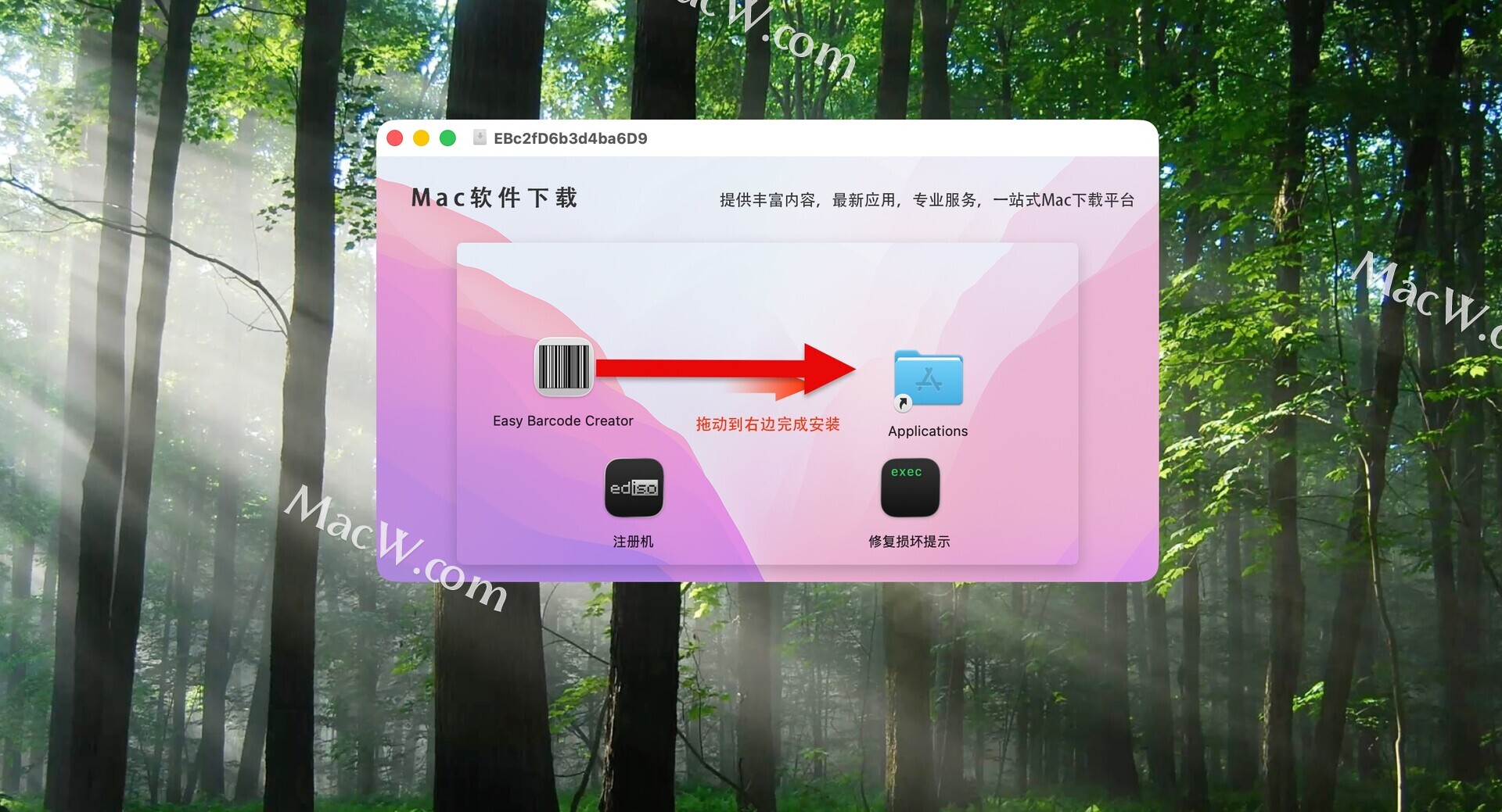 将左侧的Easy Barcode Creator拖动到右侧的应用程序中即可,如图
