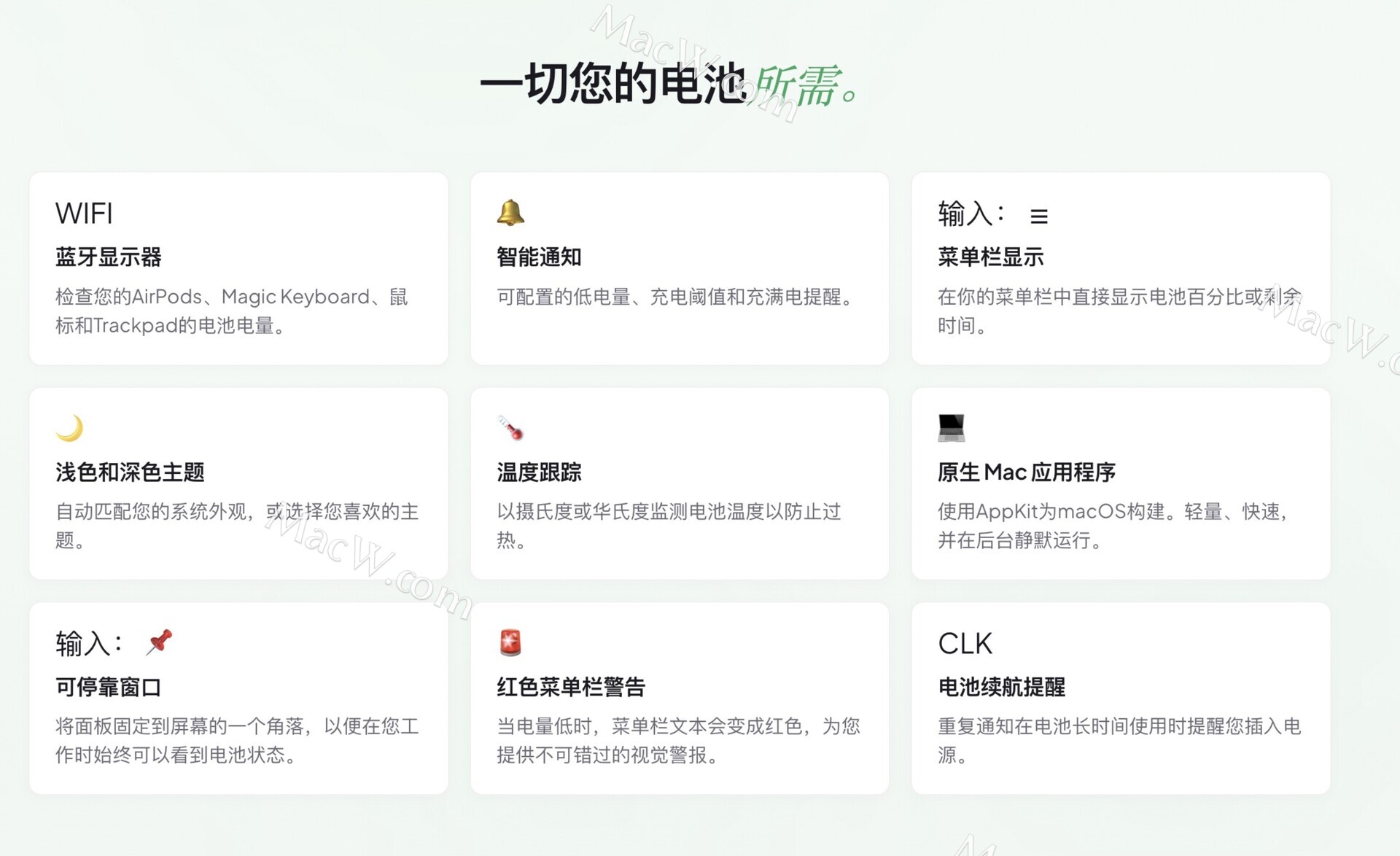 每一个指标都重要 温度、电压、电流、功耗、循环次数和制造日期。电池健康状况3直接从您的Mac电源管理系统读取数据,这是您在其他地方无法获得的数据。