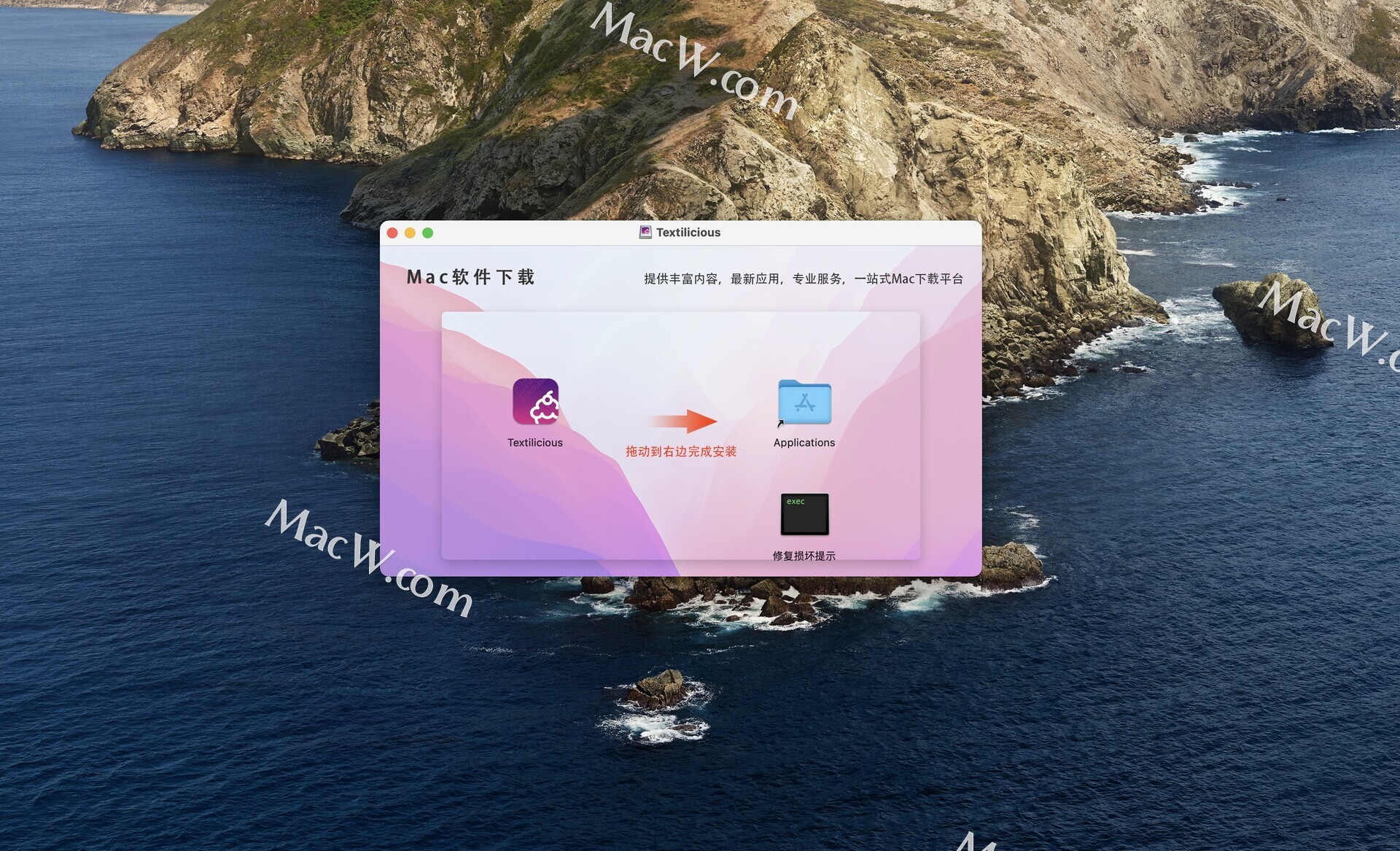 下载完成后,打开安装包,将左侧文件拖动到右侧文件夹即可。