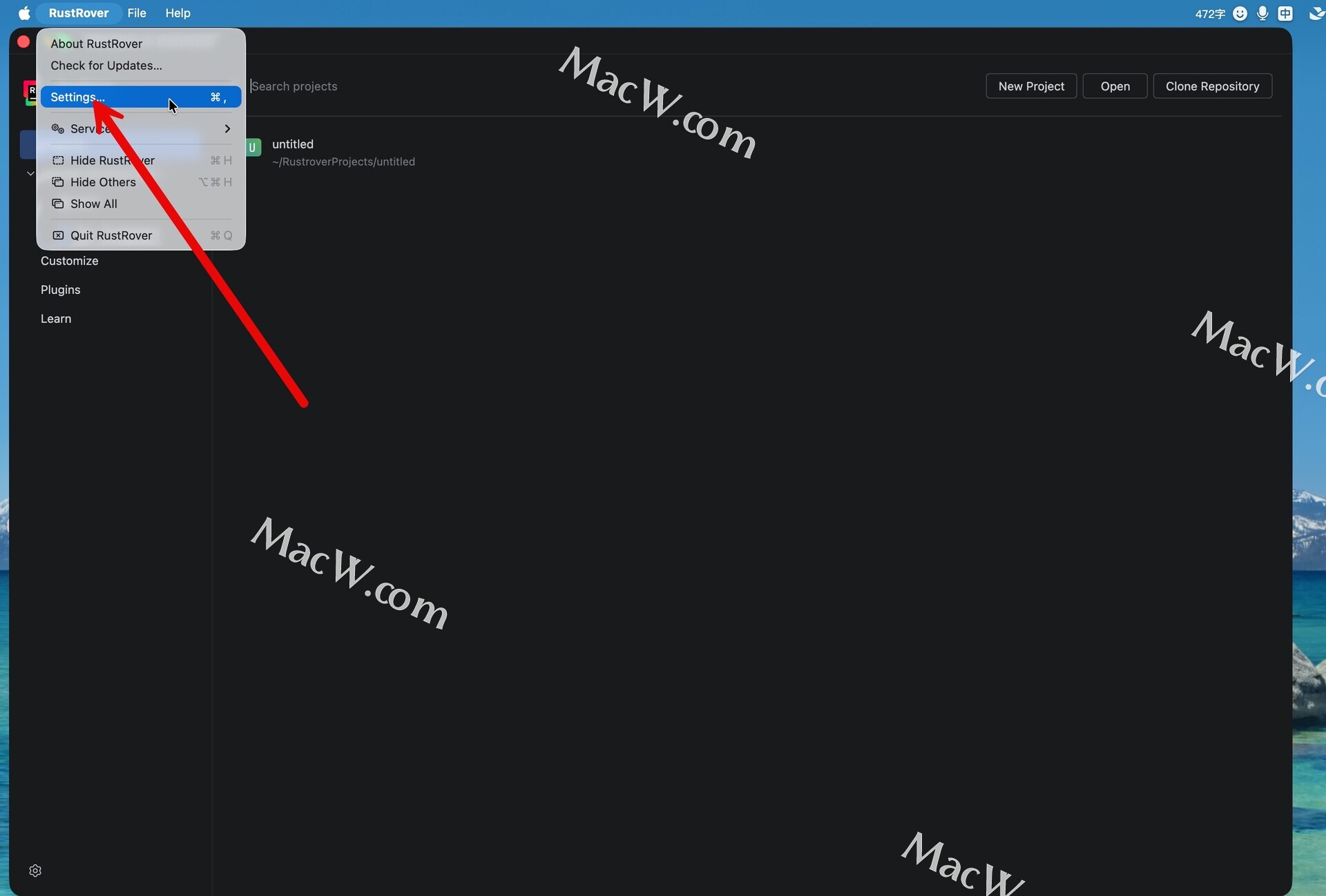 打开软件,点击左上角菜单栏settings,如图: