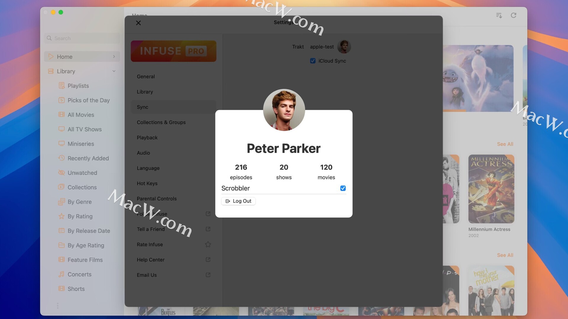 - 与 Trakt 连接以同步观看历史、提交评分和发表评论。