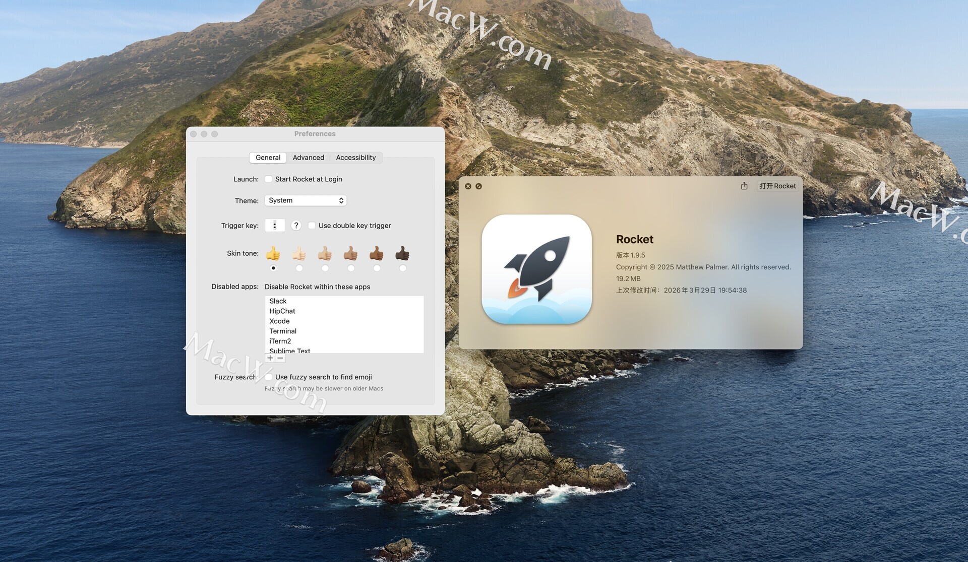 Rocket Pro 是一款 macOS 平台的 Emoji/GIF/ 文本快捷输入增强工具(Rocket 应用的专业版),以 Slack 风格语法 全局快速调用表情、动图与自定义文本片段,解决系统原生输入繁琐、搜索慢、无个性化扩展的痛点,让全应用内高效输入符号、表情包与常用文本。