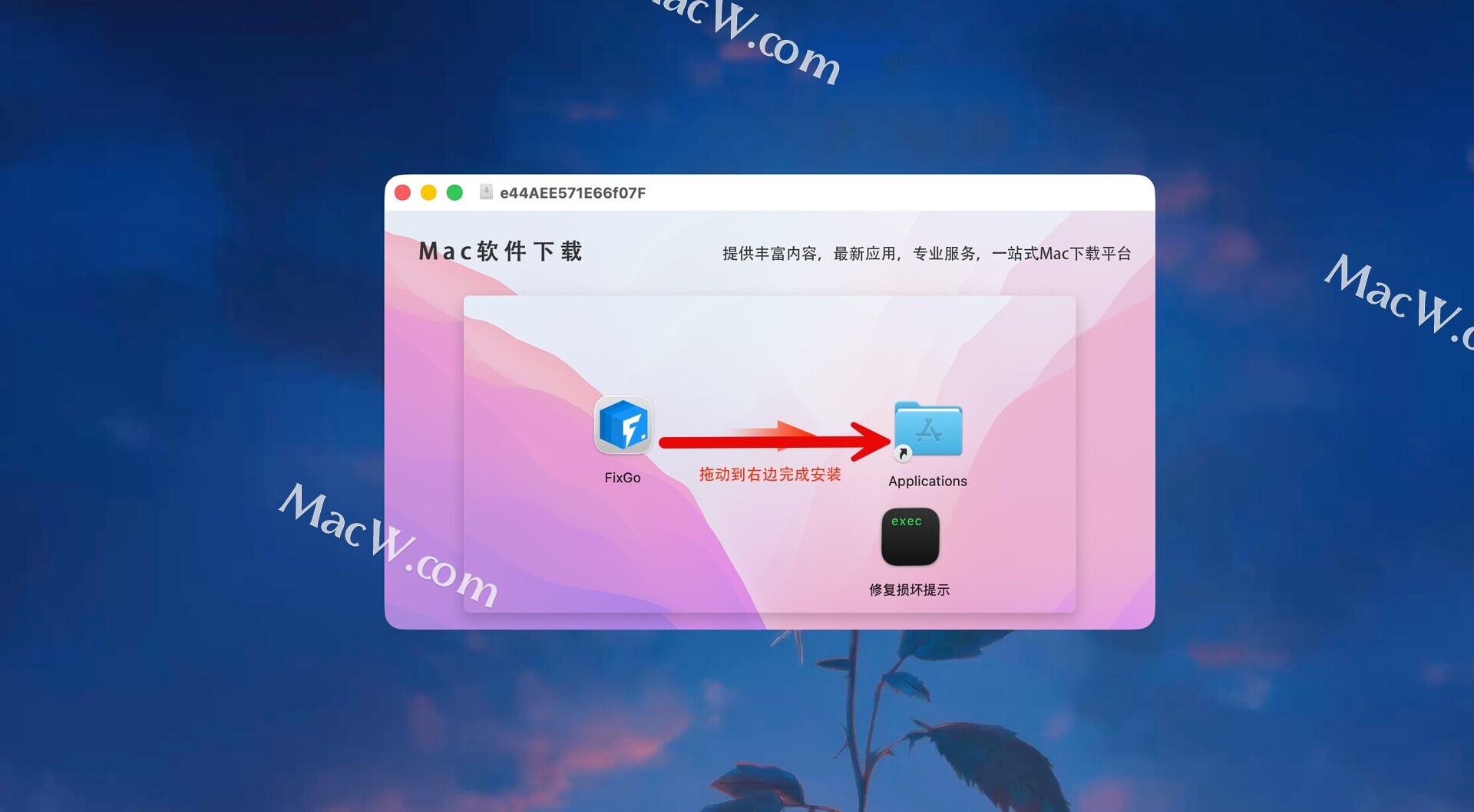 将左侧的FixGo拖动到右侧的applications中即可,如图