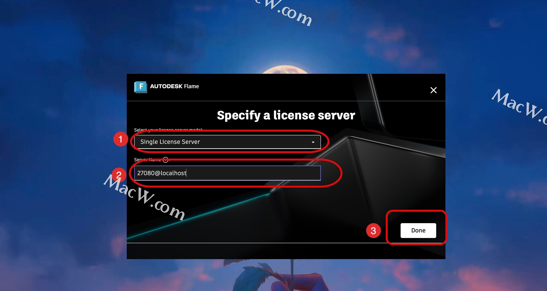 注意: 请保存好Launch Server文件,每次重新启动 Mac 后都需要运行服务器,方能运行flame软件