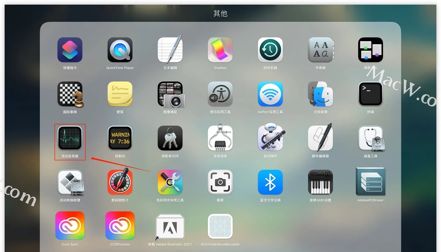 1.打开【启动台】-【其他】-【活动监视器】