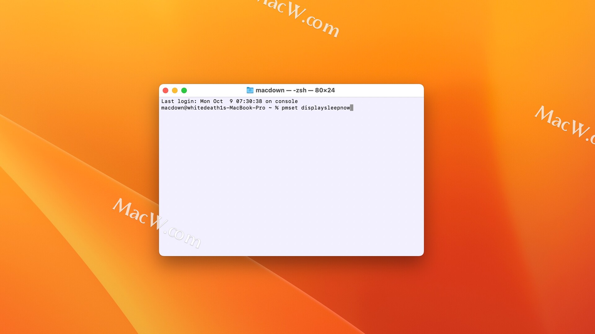 打开终端,输入命令pmset displaysleepnow