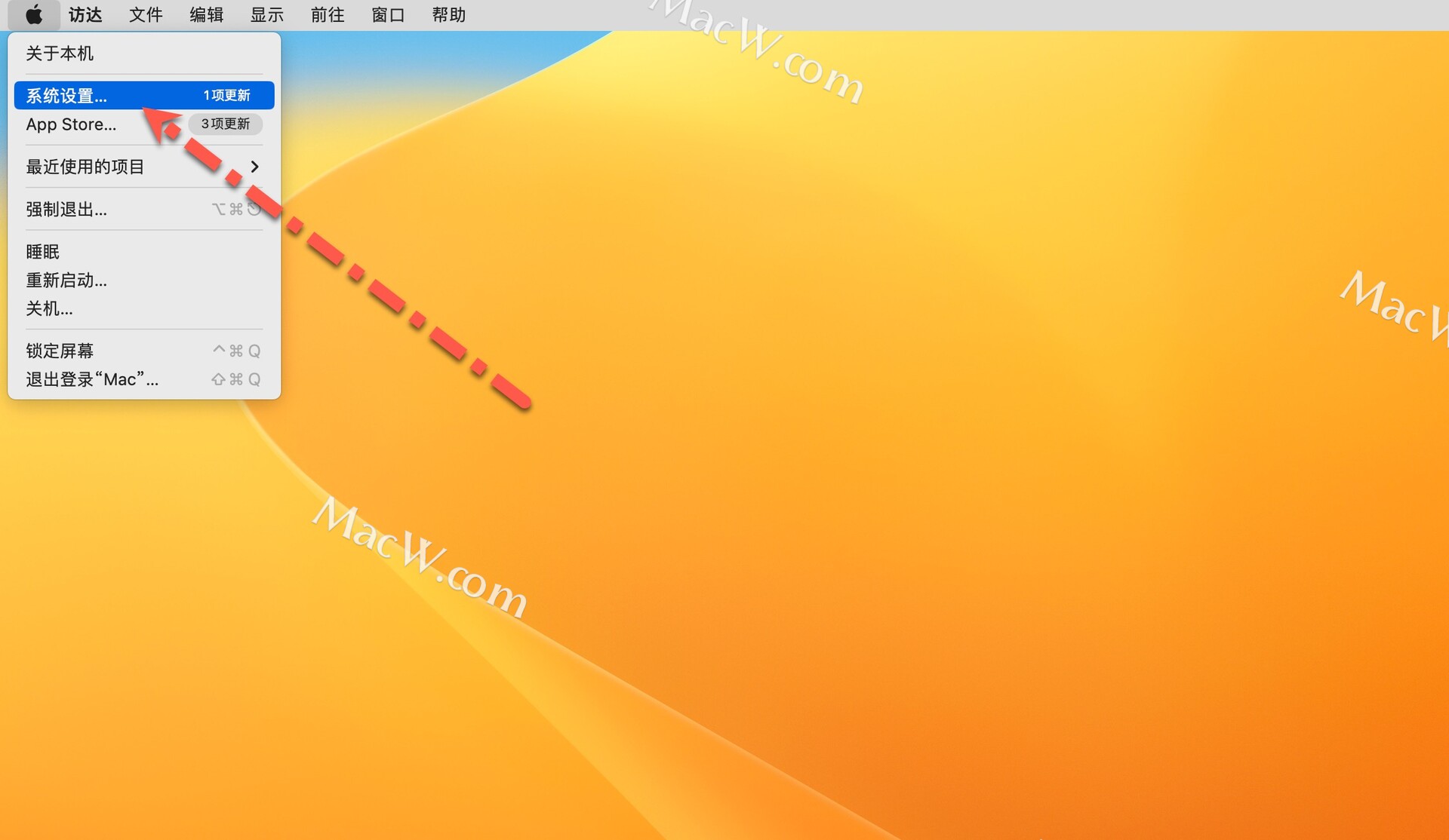 点击左上角的苹果图标,从下拉菜单中,选择“系统设置”