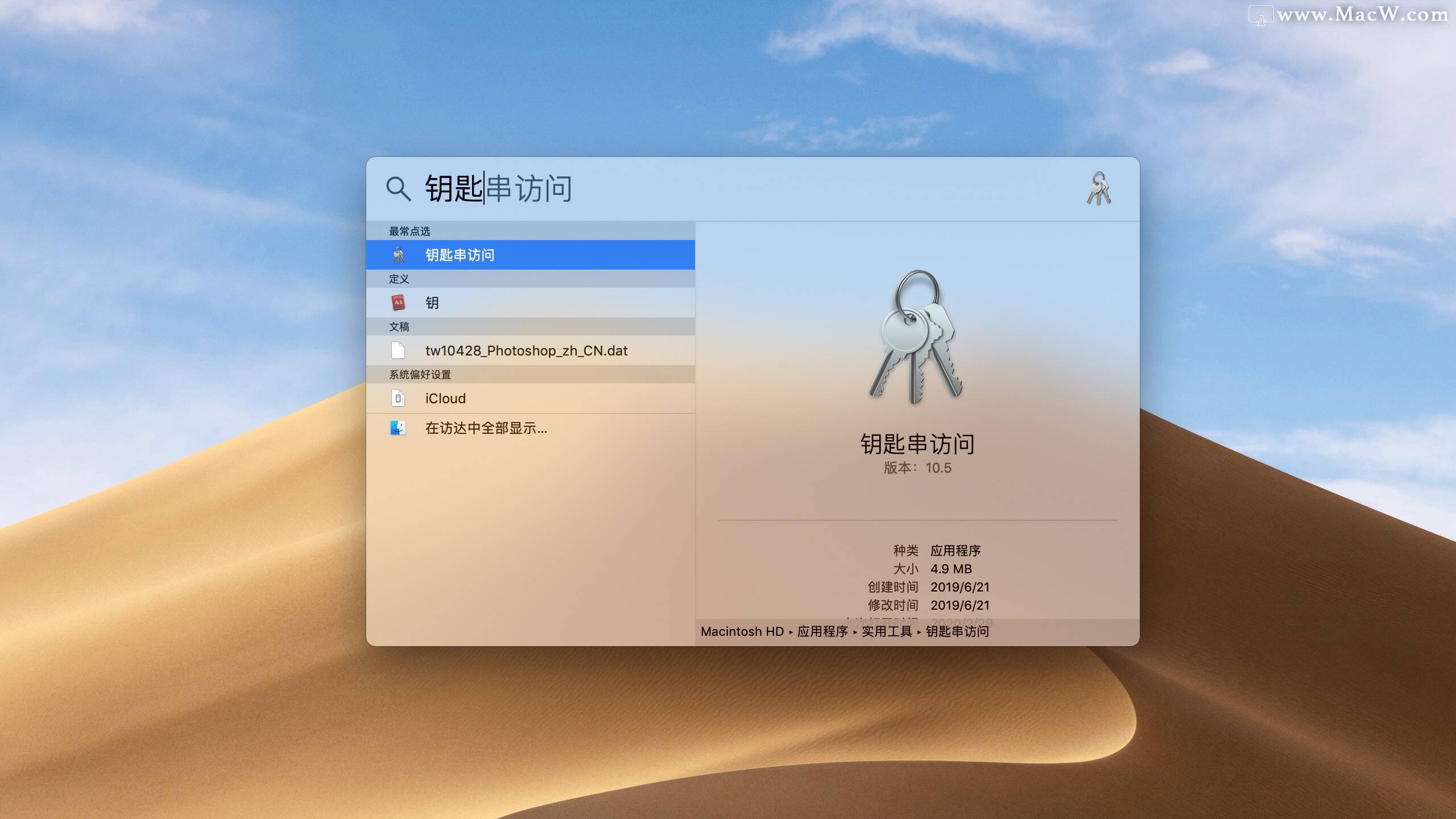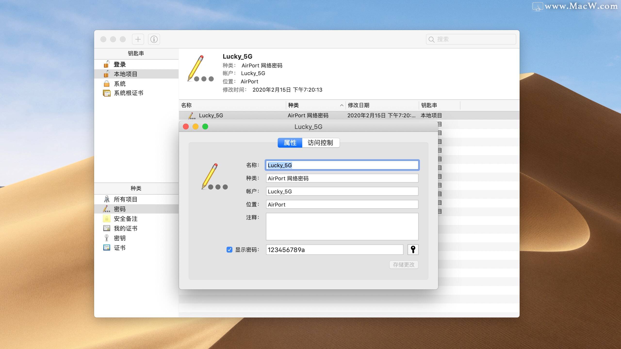 钥匙串是Mac管理WiFi和各种密码的应用,里面存储了所有连接过的WiFi密码,以及Safari浏览器保存的网站登录密码。